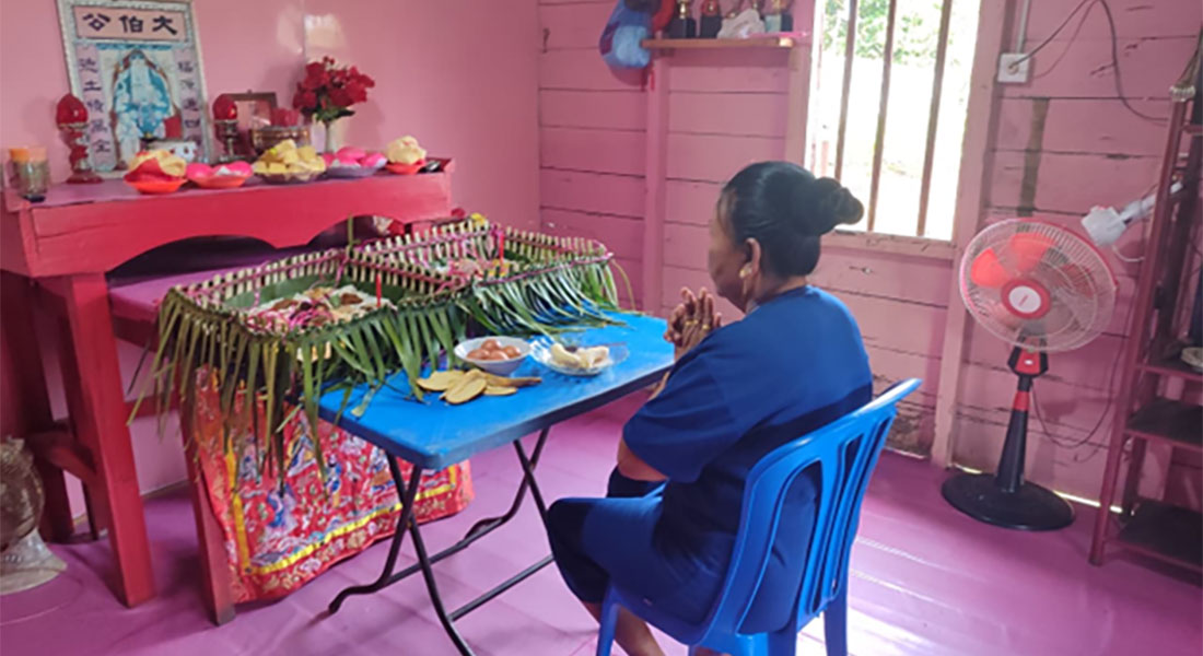 Mak Okon memimpin ritual Bele Kampung di Desa Tanjung Padang [Foto : Bahtera Alam]